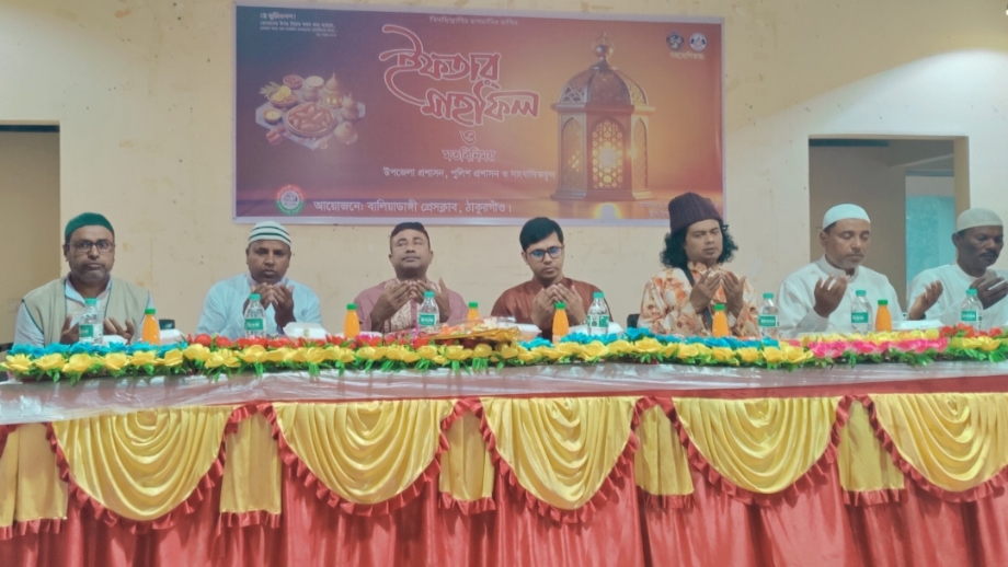 প্রেসক্লাবের সভাপতি এমএন নুরুল ইসলামের সভাপতিত্বে অনুষ্ঠানে অতিথি হিসেবে উপস্থিত ছিলেন উপজেলা সহকারী কমিশনার (ভূমি) আহসানুল হক ও বালিয়াডাঙ্গী থানার অফিসার ইনচার্জ (ওসি) বুলবুল ইসলাম।