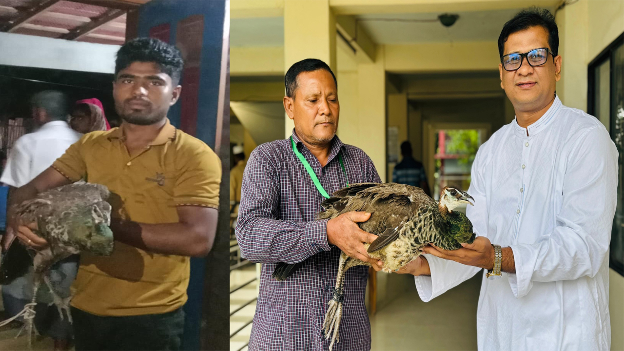 পাখিটি আটক করা মিলন হক বলেন, "গত শনিবার আমাদের আশপাশের গ্রামগুলোতে ময়ূরটিকে ঘোরাঘুরি করতে দেখা যায়। অনেকে ধরার চেষ্টা করলেও পারেনি। রোববার দুপুরে হঠাৎ আমার বাড়ির ভেতরে চলে এলে আমি সেটিকে আটকে ফেলি এবং পরে ইউএনওর কাছে হস্তান্তর করি। যেহেতু আমাদের বাড়ি সীমান্ত এলাকায়, তাই ধারণা করছি এটি প্রতিবেশী দেশ ভারত থেকে এসেছে।"