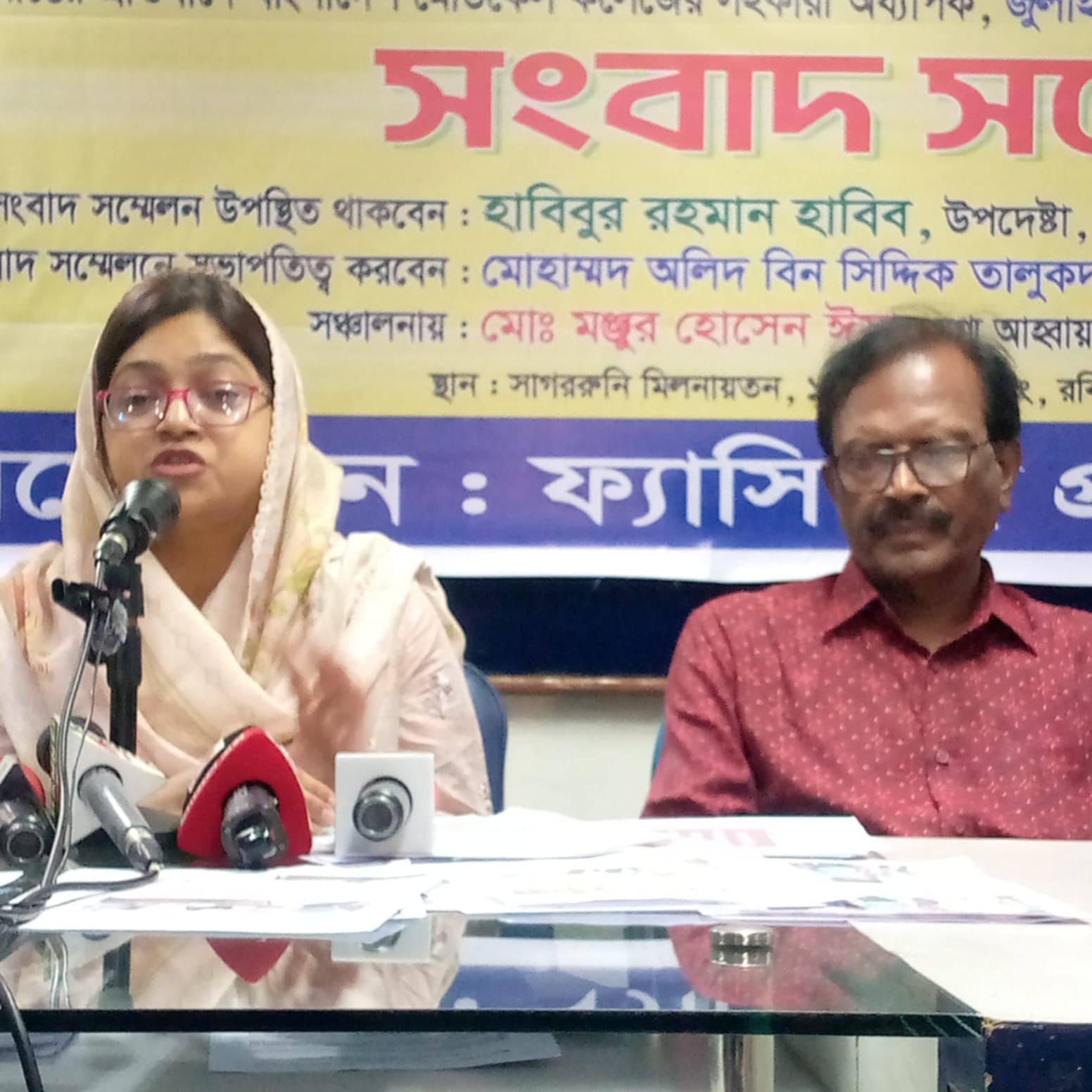 ফ্যাসিবাদ প্রতিরোধ আন্দোলনের সভাপতি মোহাম্মদ আলিদ বিদ সিদ্দিক তালুকদারের সভাপতিত্বে লিখিত বক্তব্য পাঠ করেন ভিকটিম ডাঃ ফারজানা মাকসুদ।