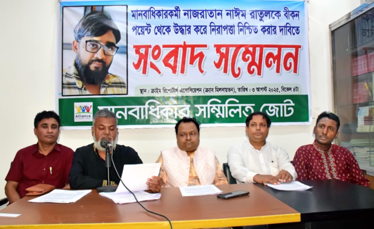৩ আগস্ট রবিবার বিকেল ৪ টায় বাংলাদেশ ক্রাইম রিপোর্টার্স অ্যাসোসিয়েশন (ক্র্যাব)-এ আয়োজিত এক সংবাদ সম্মেলনে মানবাধিকার সম্মিলিত জোটের মুখপাত্র মো. মঞ্জুর হোসেন ঈসা নাজরাতান নাঈম আহমেদ (রাতুল)-এর মানবাধিকার লঙ্ঘনের একটি গুরুতর অভিযোগ তুলে ধরেন।