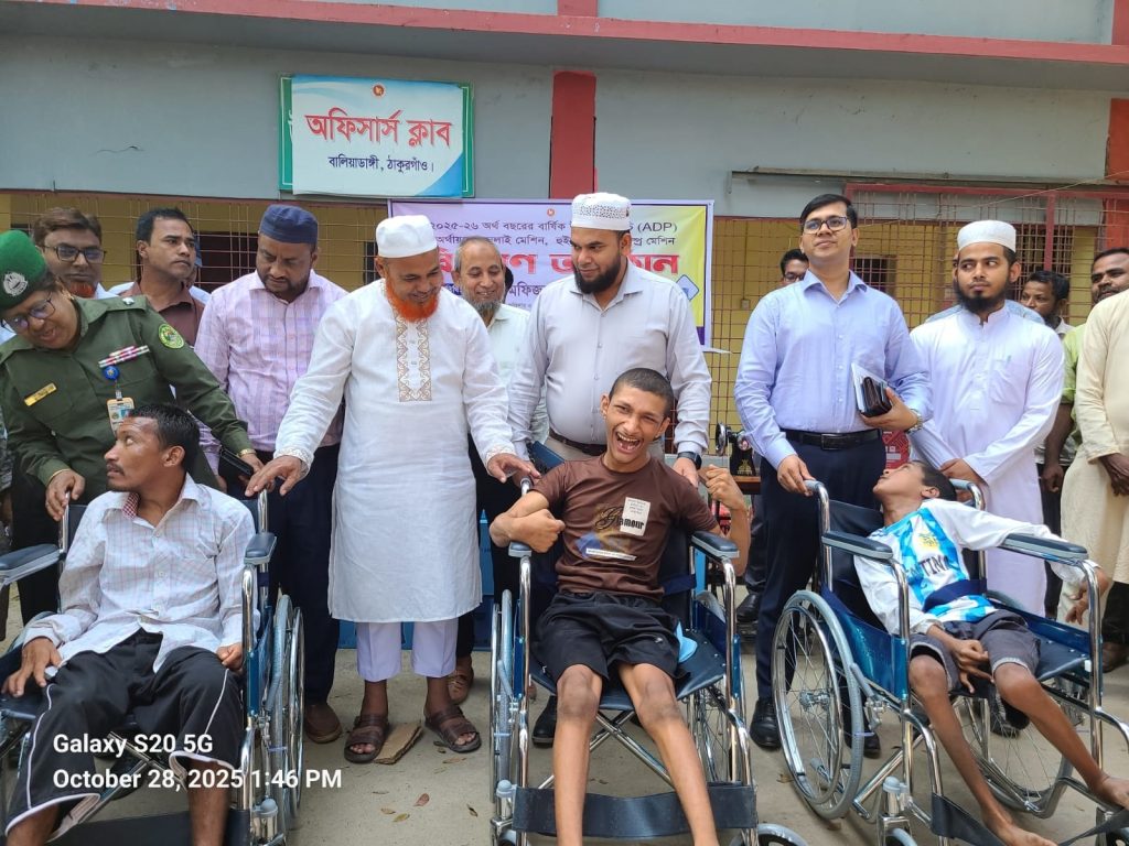 ঠাকুরগাঁওয়ের বালিয়াডাঙ্গী উপজেলা প্রশাসনের উদ্যোগে ২০২৫-২০২৬ অর্থবছরের বার্ষিক উন্নয়ন কর্মসূচি (এডিপি) আওতায় সেলাই মেশিন, হুইল চেয়ার, ডিজিটাল ব্লাড প্রেসার মেশিন ও স্প্রে মেশিন বিতরণ করা হয়েছে।